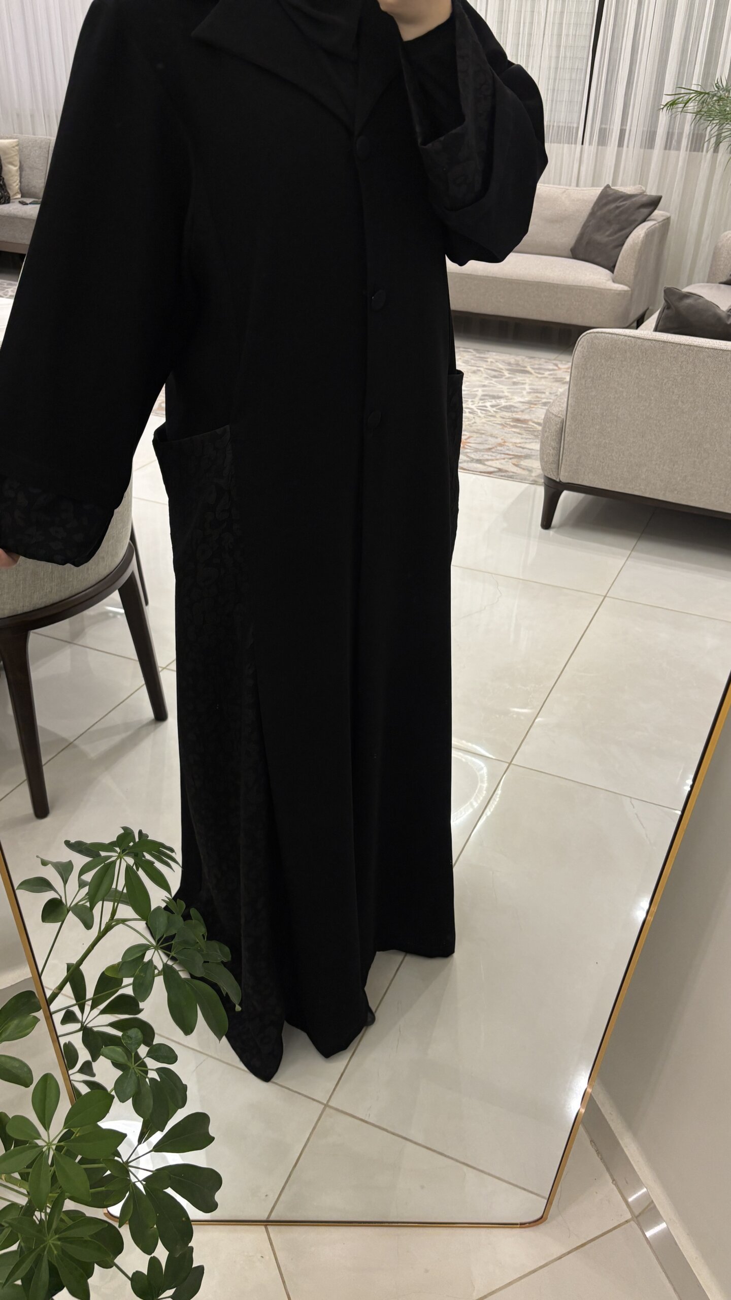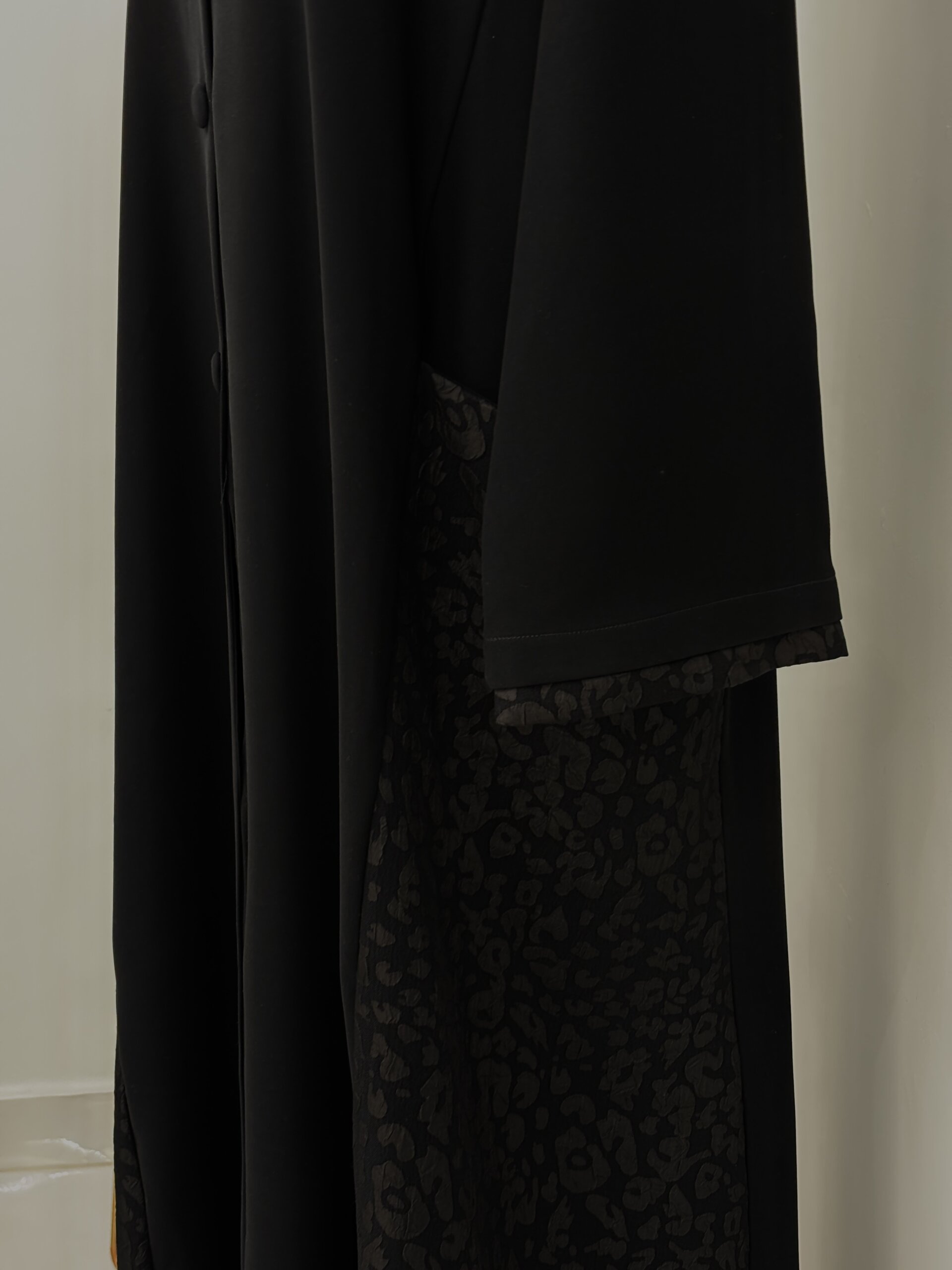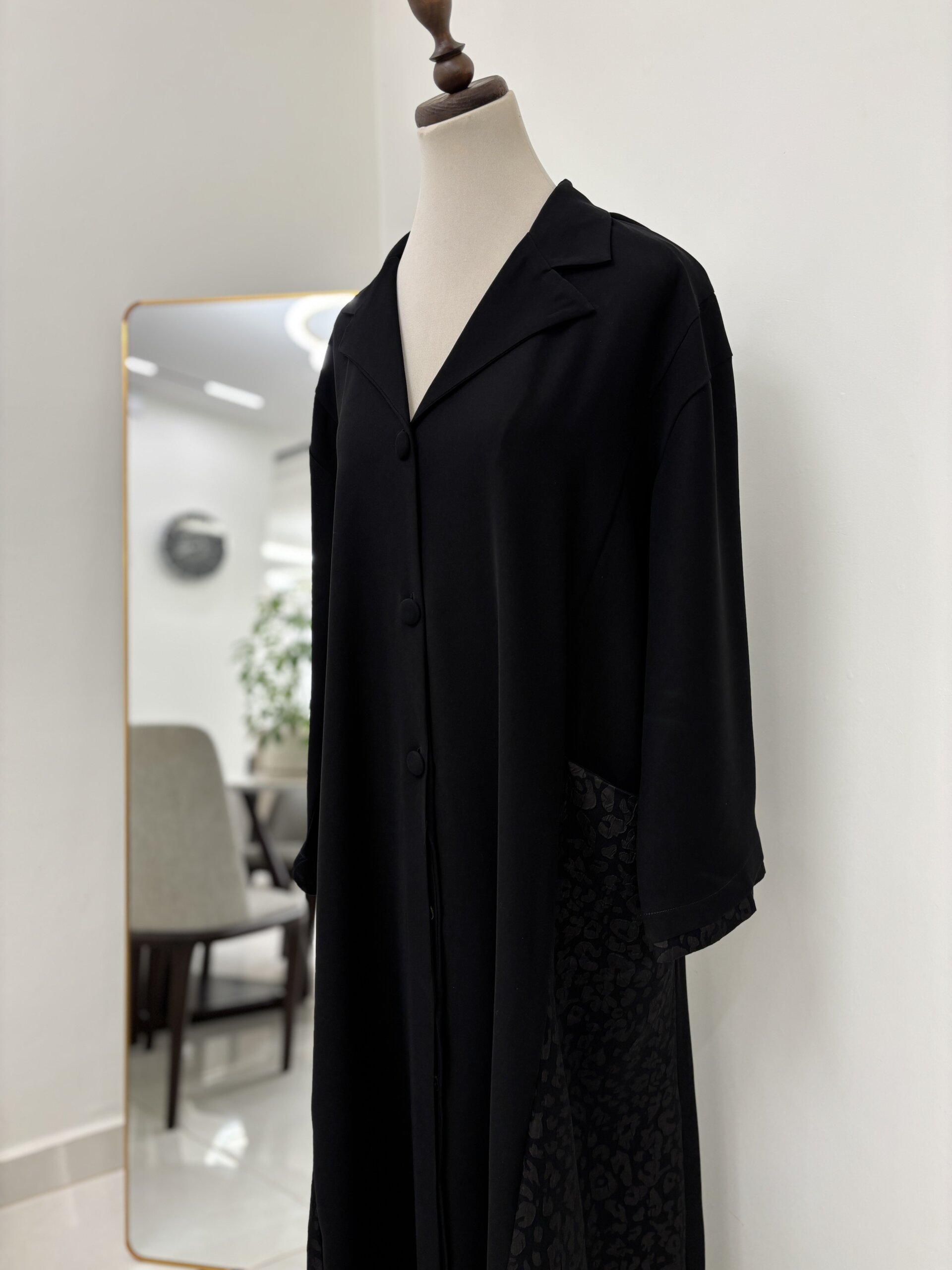 عباية من قماش اندونيسي فاخر بستايل البليزر مع قماش الجاكار على الجوانب